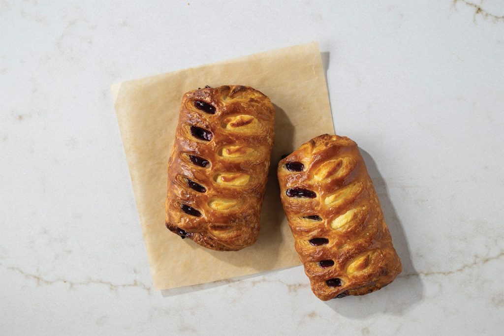 Menu / Sweets & Pastries / Blueberry Cream Cheese PastryBlueberry Cream Cheese Pastry Pastry with blueberry and cream cheese filling. Contains: Coconut, Milk, Wheat 230 Calories per serving